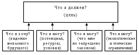 На основе образа желаемого будущего и ответа на вопрос, что я могу, во всех трех его упомянутых смыслах, формируется ответ на вопрос, что я должен - цель, которую я ставлю перед собой и своим предприятием.