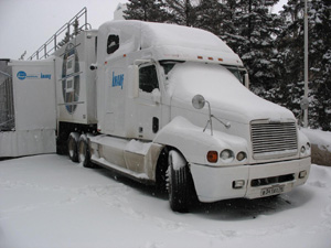 Справка: «Инфомобиль КНАУФ» - созданный в 2003 году в Санкт-Петербурге 20-метровый автопоезд, состоящий из американского тягача «Фрайтланер» и фургона, который трансформируется из средства передвижения в выставочную экспозицию.