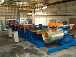 Анонсированное ранее оборудование по продольной резке тонкого рулонного металлопроката проходит заводские испытания, после чего начнутся пуско-наладочные работы. Новая линия позволяет резать холоднокатаную сталь, сталь с цинковым или лакокрасочным покрытием шириной от 600 мм до 1250 мм, толщиной от 0,4 до 2,5 мм и весом рулона до 10 тонн. При этом минимальная ширина ленты после резки 20 мм, а точность изготовления ± 0,1 мм.