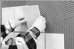 Высокая фиксирующая способность клея исключает сползание плитки, что позволяет производить облицовку в любом направлении, в том числе «сверху вниз».