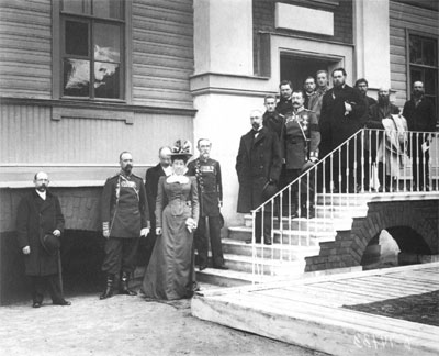 Группа попечителей общества "пособия бедным женщинам в С.-Петербурге" у дома дешевых квартир.