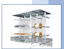 При наличии двух основных способов монтажа по типу хранимых грузов стеллажное оборудование весьма разнообразно. Существуют обычные балочные стеллажи для фронтального хранения, глубинные (набивные) стеллажи, консольные стеллажи для хранения длинномерных грузов, передвижные (архивные) стеллажи, стеллажи элеваторного типа. Они позволяют размещать самые разные грузы как в таре (от обычных картонных коробок до паллет), так и без не. Консольные стеллажи, установленные друг напротив друга позволяют хранить негабаритные грузы.