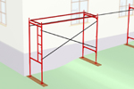 В зависимости от уровня на лежни устанавливаются винтовые опоры или опорные пяты. Рамы, установленные на опорные пяты и винтовые опоры должны находиться в одной горизонтальной плоскости. 1-я и вторая рама устанавливаются на опоры. К ним на поворотные замки присоединяется сдвоенная диагональ. Образованная ячейка строительных лесов укрепляется горизонтальной связью.