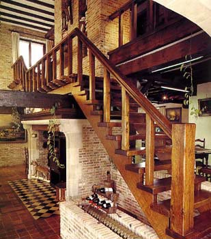 Хотя винтовые лестницы занимают мало места, их применяют реже прямолинейных. Дело в том, что они не очень удобны. Спуск по ним требует внимания и осторожности. И потому предпочтение чаще отдается маршевому аналогу. В основном "винт" используется как вспомогательный вариант (потому что главная парадная лестница в доме - всегда маршевая). Кроме того, винтовая выручает, когда проем для монтажа лестницы слишком мал. Хотя существуют винтовые лестницы большого - до 3 метров - диаметра. Однако специалисты считают, что в проеме такого размера разумнее ставить все-таки маршевую лестницу. Этот вариант реален даже в проеме 2 x 2 м. Естественно, чем он меньше, тем круче будет лестница, и наоборот. Однако пологость - отнюдь не всегда удобство. Его определяет целый комплекс составляющих. Лестница конструируется под конкретный дом. Оптимальность ее параметров и создает комфортабельность подъемов и спусков. Высота шага подъема может быть от 15 до 19 см, а высота поручня - 90-95 см.