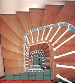 В нынешних винтовых лестницах ступени располагаются вокруг центральной стойки - так называемой обсадной трубы - и не нуждаются в дополнительной опоре или креплении. Но в принципе винтовая лестница может крепиться на косоурах или на больцах. Не стоит, однако, путать винтовые лестницы со спиралевидными. Такие лестницы не имеют косоуров, больцев и располагаются обычно в центре помещения. Их ступени лихо закручиваются вокруг обсадной трубы в виде прямой вертикальной спирали. А вот обычные винтовые лестницы могут быть слегка вытянутыми. В наши дни функциональность винтовых лестниц имеет меньшее значение, чем их дизайнерские возможности. Винтовую лестницу можно сделать из дерева, в классическом стиле, а можно создать настоящее чудо авангарда из стекла и металла.