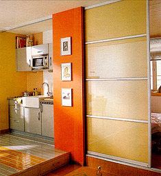 Осмотритесь вокруг. Может быть, высота помещения позволяет устроить антресоли, которые примут на себя функции отдельного помещения, например, спальни. Или конструкция подоконника позволяет соорудить что-то весьма удобное и полезное. Смелее создавайте подиумы и используйте пространство внутри них. Под подиум можно даже задвинуть кровать. Чтобы нам не повторяться, советуем прочитать «Новый взгляд на антресоли», «Многоликий подоконник» и «Как обустроить гостиную».