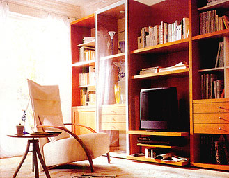 Очень подходит для нашего случая мобильная мебель (всякие откатные столики, тумбочки, стеллажи и т.д.), а также трансформируемая мебель, совмещающая иногда несколько полезных функций.