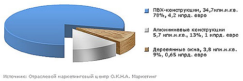 В настоящее время в Европе 45% рам – пластиковые, 30% - деревянные и 25% - алюминиевые. Востребованы ПВХ-конструкции и в России. (см. Диаграмму). Причем, по словам специалистов Группы компаний ПРОПЛЕКС, наибольшей популярностью у населения пользуется трехкамерный профиль. Ведь он подходит практически для любых условий эксплуатации.