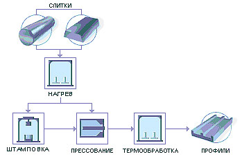 Процесс производства архитектурных алюминиевых профилей подразделяется на две основные стадии.
