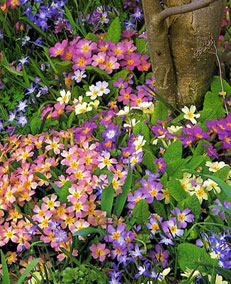 Многим видам и сортам примулы нравится влажность и полутень. Они хорошо чувствуют себя среди деревьев и кустарников и особенно подходят для сада природного стиля.