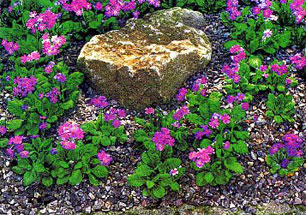 Очень красивы в саду комбинации примул с водой. Посадите весной на берегу пруда примулу розовую (P. rosea) и любуйтесь ее карминово-красными цветками.