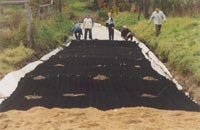 Для осушения или снижения уровня грунтовых вод, в частности назаболоченных почвах, обычно применяют различные дренажные системы. Традиционныйспособ -это канава, по которой вода выводится за пределы участка либо вспециальные места ее сбора. Такой способ -самый дешевый, но не очень эстетичный,к тому же быстро обваливающиеся края и намытый водой песок быстро снижают, азатем полностью прекращают ток воды. Чтобы края не обваливались, а участок невыглядел, как "поле боя", канаву рекомендуется заполнить щебнем или керамзитом. Такая система более эффективна, но со временем проницаемость засыпки значительноснижается за счет заиливания мелкими частицами. Геотекстиль, если им выложитьполностью канаву и внахлест уложить на засыпку, фильтрует тонкодисперсный поток,и площадь фильтрации дрены, а также ее водопроницаемость сохраняются в течениигораздо большего времени. Для выполнения дренажей также часто используютдренажные перфорированные трубы, в последнее время их часто используют уже сгеотекстилем, обернутым вокруг трубы, что предотвращает засорение самой трубы иотверстий в ней. Геотекстиль для этих целей идеально подходит благодаря высокимфильтрующим способностям материала и тому, что он не заиливается. При примененииданной технологии возможен отказ от использования дренажной трубы, только щебенькрупных фракций и геотекстиль, это так называемая технология мягкого дренажа.