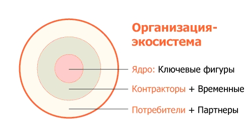 Еще бытует мнение, что фриланс — это что-то маргинальное, что большие дяди и тети так не делают, а растят свои кадры. На самом деле делают, и давно, особенно в более развитых обществах. Тем более что для этого существуют вполне объективные причины: •Проектный подход. В постиндустриальном обществе большое место занимает умственный труд, особенно в сфере коммуникационных услуг. Умственный труд невозможно оценить и сложно контролировать, поэтому организации переходят на проектный подход, когда оплачивается не рабочее время, проведенное с большей или меньшей пользой под чьим-то контролем, а результат. •Контракторы эффективнее наемных работников. Благодаря коммуникациям сеть контракторов стала экономически и организационно выгоднее, чем штатные работники (в некоторых компаниях доля стоимости продукта, созданная контракторами, достигает 80%). Кроме того, из-за скорости происходящих изменений ни одна компания уже не может дать сотрудникам долгосрочных гарантий. •Пирамида и Экосистема. Старая структура организации — пирамида: топ — мидл — линейный персонал — потребитель. Новая структура организации: ядро (ключевые фигуры) — оболочка (контракторы и временные сотрудники) — экосистема (зависящие партнерские компании и потребители, участвующие в создании продукта. •Деревья и птицы. Происходит исчезновение средних компаний, на рынке остаются только гиганты и маленькие компании (фрилансер — это тоже своего рода маленькая компания :). Гиганты стабильны, но медленно реагируют на изменения. Маленькие компании высокоадаптивны и создают инновации (вот, кстати, совсем свежий пример), но нуждаются в ресурсах больших компаний. Средние же компании уступают мелким по адаптивности, а крупным — по ресурсам.