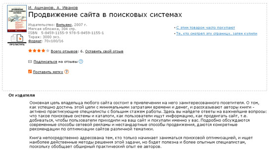 Клиенты чувствуют себя причастными к успеху, предвкушают свой успех, охотно начинают сотрудничать.. При создании интернет-магазина "Озон" ООО "Интернет Решения" пошло другим путем. Изначально компания использовала узнаваемость англоязычного магазина Amazon. Методики обращения к клиенту в обоих случаях похожи – так как основной целевой посетитель у них один – покупатель книг. Остальные товары, предлагаемые на "Озоне" – всего лишь дополнительный бонус, большинство посетителей по традиции приходят туда за книгами. Контент, необходимый для успешный продаж, включает в себя подробное описание каждого товара, фотография обложки, оценка, комментарии и рецензии читателей. В качестве изначально выкладываемого текстового контента в данном случае выступает аннотация к книге, остальное пишут уже читатели. Чем больше объем такого контента, тем лучше – увеличивается возможность продать книгу. А отрицательные отзывы читателей можно всегда удалить. В совокупности с партнерской программой, этот метод дает неплохие результаты. Зачастую в среде книголюбов «Озон» используется для того, чтобы получить дополнительную информацию о новинках издательств. А причина тому – регулярно обновляемый контент.