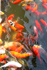 В центре платформы установлен насос, который подкачивает микроводоросли со всего пруда к клумбе, а очищенную и обогащенную кислородом воду откачивает в придонные слои пруда. И пруд чистый, и рыбки довольны - у них теперь не только кислорода вдоволь, но и обед всегда готов. Дело в том, что живущие в клумбе рачки не только очищают пруд, но и служат кормом для рыб. Это позволяет поддерживать естественный баланс.