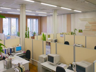 Достаточно сложная проблема, связанная с изменениями на рабочем месте, - это перекладка офисных коммуникаций. При использовании мобильных перегородок вопрос решается гораздо легче и оперативнее. Ведь в них предусмотрена возможность скрытой укладки кабеля (кабель-канал в полости профиля), обеспечивающей быстрый доступ к внутренним коммуникациям. На практике это означает возможность произвести быстрый монтаж всего оборудования.