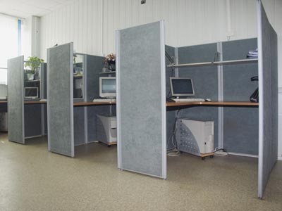 Это чрезвычайно гибкий инструмент для формирования различных функциональных зон в офисном пространстве. Нередко с их помощью конфигурируются кабинеты, переговорные комнаты, коридоры, но чаще всего их используют для создания большого числа изолированных рабочих мест на ограниченных площадях.