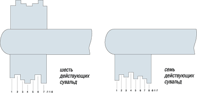Цилиндровые замки соответственно получили свое название потому, что их внутренние механизмы имеют форму цилиндра, круга или «капельки». Ключи для цилиндровых замков плоские. По краям и в середине имеются вырезы или точечные углубления. Секретность замка определяется просто: количество вмятин на ключе равно количеству стопорных штифтов в цилиндре. Если их пять и более, значит, замок супернадежный (см. схему).