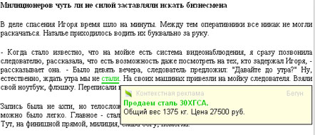 «Гирперконтекст, однозначно, раздражает, но вы же все равно телевизор смотрите, несмотря на рекламу. Газета работает на рекламодателя», - пояснил свою позицию руководитель веб-редакции «Известия.ру» Александр Леонтьев.