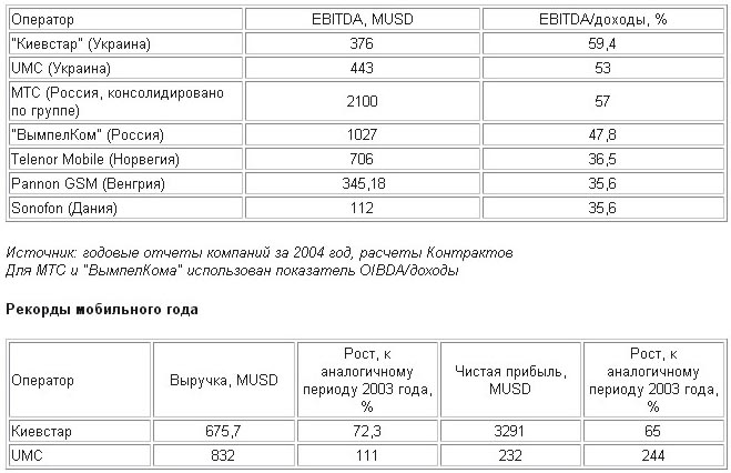 Об отсутствии конкуренции свидетельствует и высокая доходность бизнеса лидеров украинского рынка мобильной связи (см. Украинские операторы - самые прибыльные). Рентабельность по EBITDA (прибыль без учета налогов, амортизации, процентных выплат и износа основных фондов) "Киевстара" и UMC уже который год продолжает сохраняться на уровне 50-60%.
