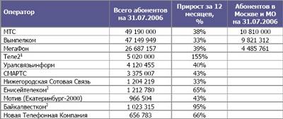 Ниже приведена сводная таблица по российским операторам с абонентской базой более 0,5 млн.: