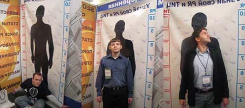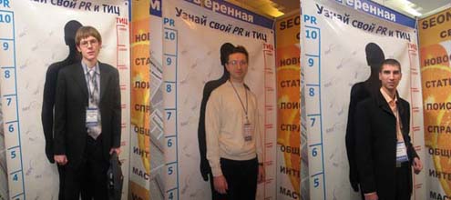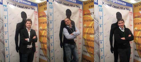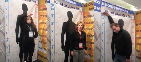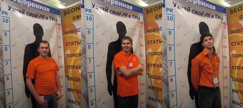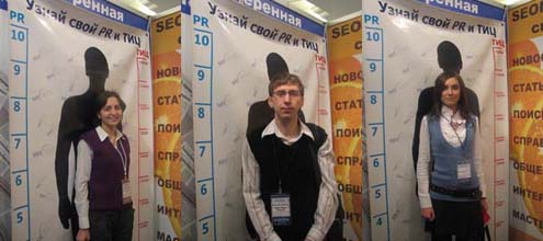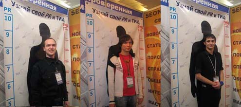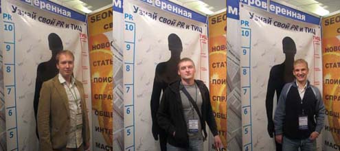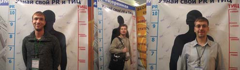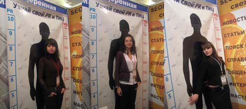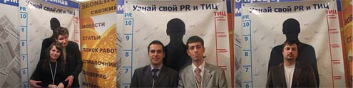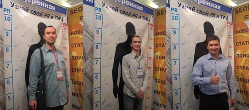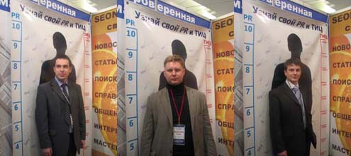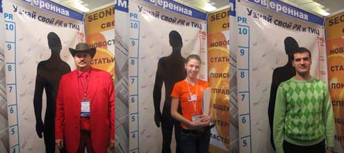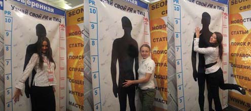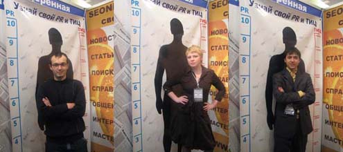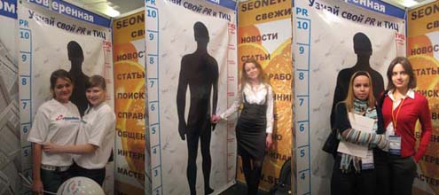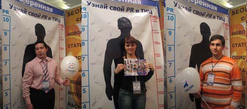 В выставке также приняло участие и онлайн-издание о поисковом маркетинге SeoNews. Мы не раздавали ни ручки, ни зажигалки, и даже презервативов у нас не было. Любой желающий, подошедший к стенду SeoNews, мог сфотографироваться на фоне баннера и узнать свой PR и тИЦ. Фотографии печатались и вручались на месте.