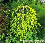 Самый распространенный вид - ель обыкновенная (Picea abies) - давний объект пристального внимания лесоводов и садоводов, поскольку многочисленные аномалии роста, как ни странно, дают интереснейший материал для селекционной работы. Количество сортов самой обычной нашей елки на сегодня исчисляется сотнями. При этом природные "неправильности" роста обладают замечательными декоративными свойствами, ценными именно для небольших садов. Наряду с достаточно крупными "золотистыми", "плакучими" и "змеевидными" формами есть масса сортов малых, карликовых и даже особо миниатюрных размеров.