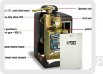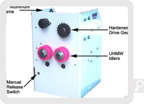 Механическая часть приводов для откатных ворот устроена несколько проще, чем для распашных. Редукторам для перемещения откатных ворот не нужно сильно снижать обороты двигателя. Существуют модели даже с двумя двигателями. На выходном валу приводов устанавливается шестерня и зубчатое колесо. Привод перемещает ворота при помощи закрепленной на балке ворот - зубчатой рейки или роликовой цепи. Модификации приводов предназначены для перемещения ворот от 300кг до 3 и более тонн! Приводы также комплектуются различными датчиками и устройствами безопасности.