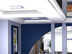 Зеркальные подвесные потолки очень эффектны в косметических и выставочных салонах, в магазинах и других помещениях общественного пользования. Сейчас панели для них чаще выполняются из полистирола или металла. Эти материалы усойчивы к ударам, воздействию влаги и перепадам температур. Для эксклюзивных интерьеров иногда изготавливают потолки с панелями из зеркального стекла, однако они довольно тяжелы и хрупки.
