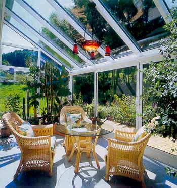 Из-за наличия обширных поверхностей микроклимат зимнего сада отличается от климата обычного помещения. Температура и влажность воздуха - без оптимального решения этих элементов зимний сад невозможен. Диапазон, комфортный как для человека, так и для растений: температура - от 20 до 22 градусов Цельсия, относительная влажность от 40 до 60 процентов. Отопление может производиться разными способами: от центральной системы отопления, автономного электрического отопления, подогрева пола, нагретого в кондиционере свежего воздуха. Возможна и комбинация этих систем. Здесь на помощь приходят специализированные системы, многие из которых полностью или частично автоматизированы. Но и оптимально подобранная, такая система не сможет обеспечить требуемую циркуляцию воздуха, ведь нагретый воздух устремляется вверх и остывая от соприкосновения со стеклом и металлом, оставляя капли конденсата, вновь опускается вниз. Значит, нужна вентиляция. Можно прибегнуть к естественной вентиляции с эффектом тяги, когда проветривание обеспечивают форточки и створки в полах. А есть автоматические установки искусственного климата с элементами дистанционного управления.