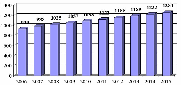 На диаграмме 3.2 отражена динамика спроса на стальные двери на рынке г. Москвы и Московской области со стороны строительного рынка до 2015 года.