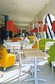 Рассеянный свет, получаемый от них, имеет наибольший коэффициент полезности и лучше всего подходит для общего освещения. Располагать такие источники света можно совершенно свободно, они могут «путешествовать» по всей верхней плоскости помещения. Такой же тип освещения могут создать и галогенные лампы, закрепленные на металлических конструкциях или вмонтированные в подвесные или натяжные потолки.