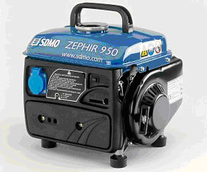 Сверкомпактный бензогенератор Zephir 950 с двухтактным двигателем в шумоизолирующем кожухе для питания электрооборудования малой мощности (700 ватт). Идеален для туризма или небольшого дачного участка.