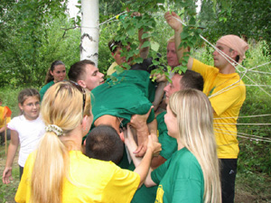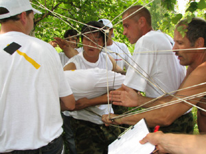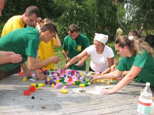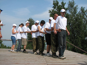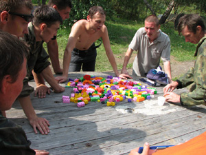 Этапы тим-билдинга в турнире получили название "Экспедиции". На каждом этапе команды встречали инструкторы, которые зачитывали задания. Задания были простыми: проложить "нефтепровод" из членов команды, построить завод, соблюдая экологическую безопасность, на этапе "Прораб и гастрабайтеры" - передать без слов строительные термины. Хитрость заключалась в том, что задания подразумевали возможность проявить себя: все, что не запрещено инструкциями - разрешено. Некоторые участники показали чудеса командообразования: перенося воду, умудрялись брать по семь стаканчиков каждый! Заводы, построенные из лего, дымили вполне реальными "трубами", а мост из лыж прокладывали не только ногами, но руками!