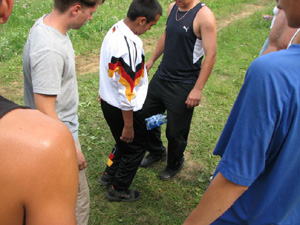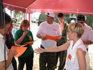 Нужно отметить немаловажную вещь - на турнире нашлись занятия не только игрокам. Для детей и взрослых была организована студия аквагрима, спустя несколько часов после начала ее работы среди зрителей и болельщиков появились носители весьма оригинальных татуировок, которые спокойно удалялись с тела обыкновенной водой. Проголодавшихся ждала настоящая солдатская каша из полевой кухни и "наркомовские" 100 граммов. А между играми ведущий не давал расхолаживаться болельщикам, проводя конкурсы на призы от спонсоров - скучать на турнире никому не пришлось. Поиграть смогли даже девушки - правда на …водных пистолетах.
