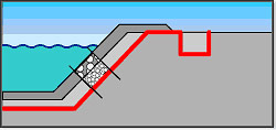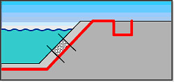 Используется в качестве защитного слоя синтетических изоляционных экранов. Препятствует повреждению гидроизоляции при укладке. Препятствует повреждению гидроизоляции из-за неровностей грунта отводит грунтовые воды и предотвращает водную эрозию откосов в случае понижения уровня воды в водохранилище или канале.