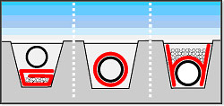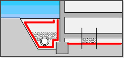 Образует защитный и дренажный слои между скальной породой и изоляционным покрытием. Защищает изоляционное покрытие от повреждений шероховатой поверхностью бетона. Защищает изоляционное покрытие от повреждений острым заполнителем. Уменьшает напряжение между бетонной отделкой и горной породой. Отводит грунтовую и ливневую воду к дренажу.