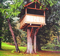 Некоторые рекомендации. Во-первых, дерево – не перманентная структура, оно будет расти и видоизменяться, следовательно, устраивая солидное жилище в ветвях, нужно учитывать эту потенциальную динамичность. Но у некоторых видов скорость роста не так высока. Вовторых, архитектура домика на дереве в большей степени зависит от структуры ствола, чем от пожеланий строителей: если ствол изгибается, домик будет повторять этот изгиб. Предпочтительнее, чтобы дерево в месте разветвления основных ветвей имело вид раскрытой ладони. Втретьих, большая часть строительных работ должна происходить на земле, и лишь самое необходимое – на дереве.
