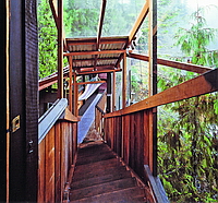 У домиков-скворечников есть окна и двери, балконы и веранды, наверх ведут лестницы, подчас весьма причудливые. Жилище как бы огибает ствол дерева, который остается внутри домика этакой живой колонной. По периметру могут стоять не только кровать и столик со стулом, но и кухонная плита и даже иногда ванна. Туда проводят телефон, свет и воду, так чтобы были доступны все блага цивилизации, включая Интернет. Правда, для строительства и меблировки следует использовать максимально легкие материалы, дабы избежать участи некоего сэра Нельсона, построившего свой первый дом на дереве по аналогии с английским коттеджем, возведя на ветвях не только стены с черепичной крышей, но даже выложенный из кирпича камин. Дом был воздвигнут на большом тополе, простоял всю ночь и… рухнул в два часа пополудни, поскольку, с одной стороны, древесина тополя слишком мягкая и рыхлая, с другой – кирпич и черепица были явно слишком тяжелыми материалами.