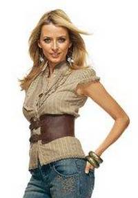 Своеобразная приталенная блуза из натурального хлопка с нашивкой, подчеркивающая фигуру. Примерная длина - 53-56 см. Аксессуары - длинные бусы, широкий ремень, браслет.