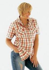 Практически никогда не выходящая из моды мужского покроя блузка в клеточку спортивного стиля. Два кармана с клапанами на груди, маленький рукав. Изготовлена из натурального хлопка. Длина - от 68 до 78 см.