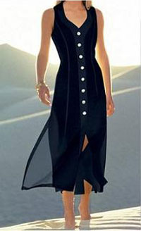 Платье со шнуровкой на спине, треугольным вырезом, соблазнительными боковыми разрезами. Большие белые пуговицы придают платью особый шарм.