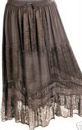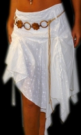 Юбка с вибрирующей кромкой, изготовленная из воздушного, легкого, неяркого материала, мягко ниспадающая на ноги. Примерная длина - 70-75 см.