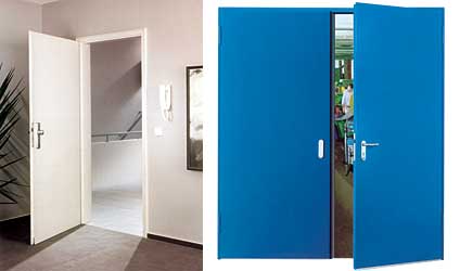 Кроме того, снаружи дверь можно обить тонким (0,5 мм) металлическим листом (например, оцинкованным) и сверху покрасить. Если же дверь новая и еще не крашенная, то поверхность дверного полотна можно обработать огнезащитным составом, например отечественными КСД, ОСП-1, ОЗП-Д, ВАНН-1 и др.