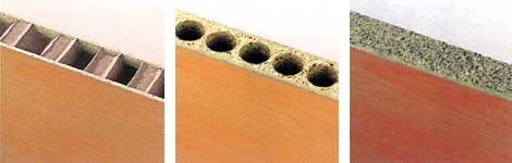 1 - сотовая основа из картона; 2 - ДСП с трубчатыми полостями; 3 - сплошная ДСП