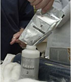 Откройте средство для мелирования и внимательно прочтите инструкцию. Наденьте защитные перчатки и смешайте цвет с закрепителем в специальной бутылочке. Хорошенько взболтайте смесь, пока раствор полностью не смешается.