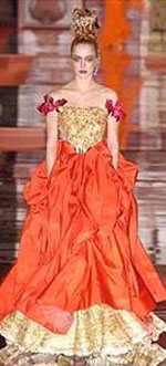 В колллекции Христиана Лакроа преобладает восточная тема. Практически все модели дополнены аксессуаром, достойным китайской императрицы - шляпой. Платья красочные и запоминающиеся!