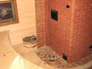 Немаловажной частью бани является каменка, которая в конечном итоге определяет, появятся ли те самые "мурашки" или вы сможете просто погреться в бане после прогулки по морозному воздуху. Сейчас на рынке предлагается немало видов оборудования для бани, поэтому нет смысла изготавливать каменку самостоятельно или заказывать ее. В зависимости от объема парной можно подобрать каменку, например, финского производства: это надежное и удобное оборудование, позволяющее создавать разные климатические режимы. Если ваша печь будет электрической, то для саун небольшого размера (объем парной до 10 кубических метров) расчитать мощность печи несложно: 1 кубический метр объема - 1 киловатт мощности. Печь-каменка может работать и на природном газе, и в отличие от электрической установки она более экономична (ведь газ - самое дешевое топливо). А в сравнении с дровяной каменкой вы сможете сократить время протапливания, поскольку теплота сгорания природного газа выше, чем дров.