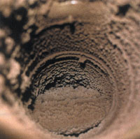 Лохмотья пыли, склизкие жировые отложения, в которых робот оставляет отчетливую колею, строительный мусор. Иногда кадр "оживляют> крысы или тараканы, которые охотно селятся в подобных местах. Зрелище бывает настолько отталкивающим, что 90% заказчиков, пожелавших обследоватьвоздушные каналы, в результате заказывают их очистку.