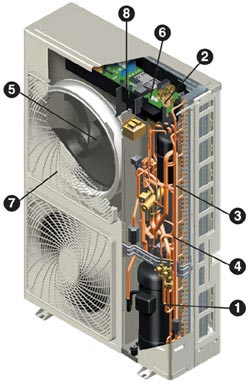 Во-первых, комбинация спирального компрессора Scroll с новым магнитоэлектрическим двигателем Reluctance DC motor, развивающим гораздо более значительный крутящий момент по сравнению с традиционными электромагнитными двигателями постоянного или переменного тока при том же энергопотреблении, экономит до 13,3 % электроэнергии.